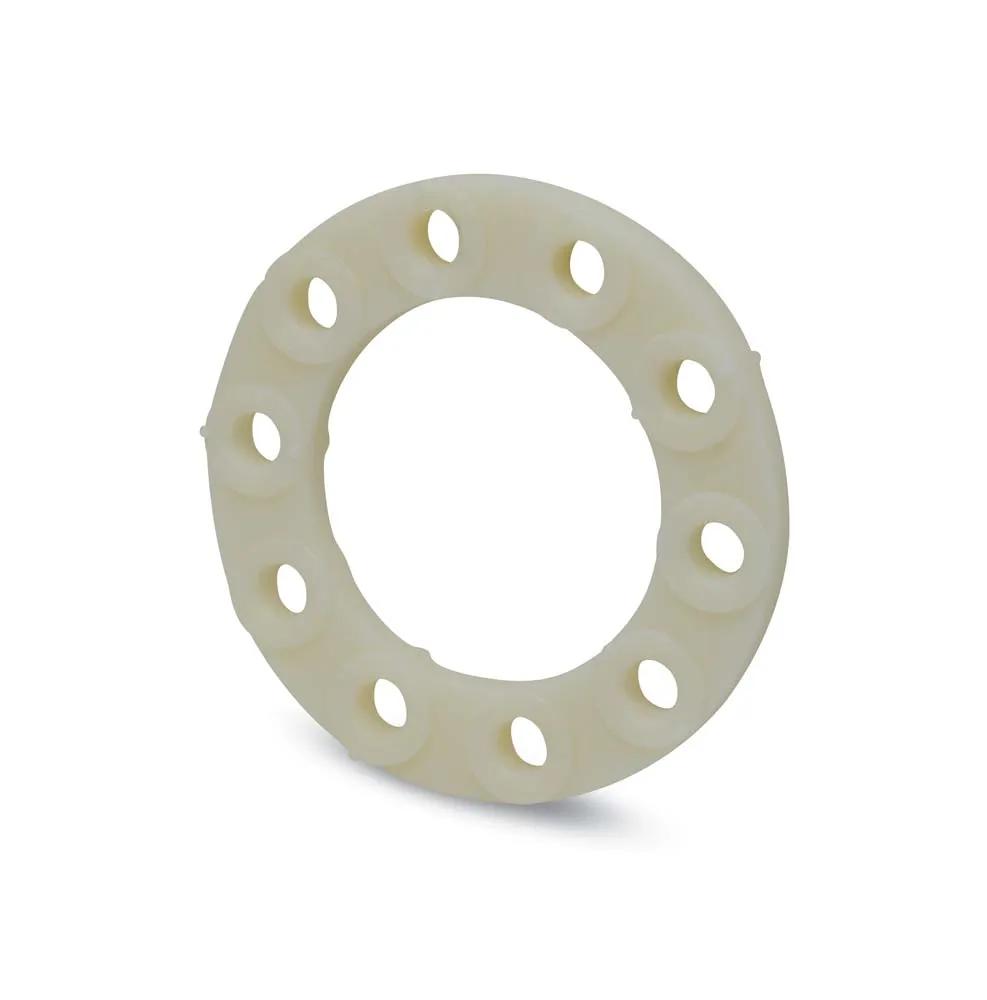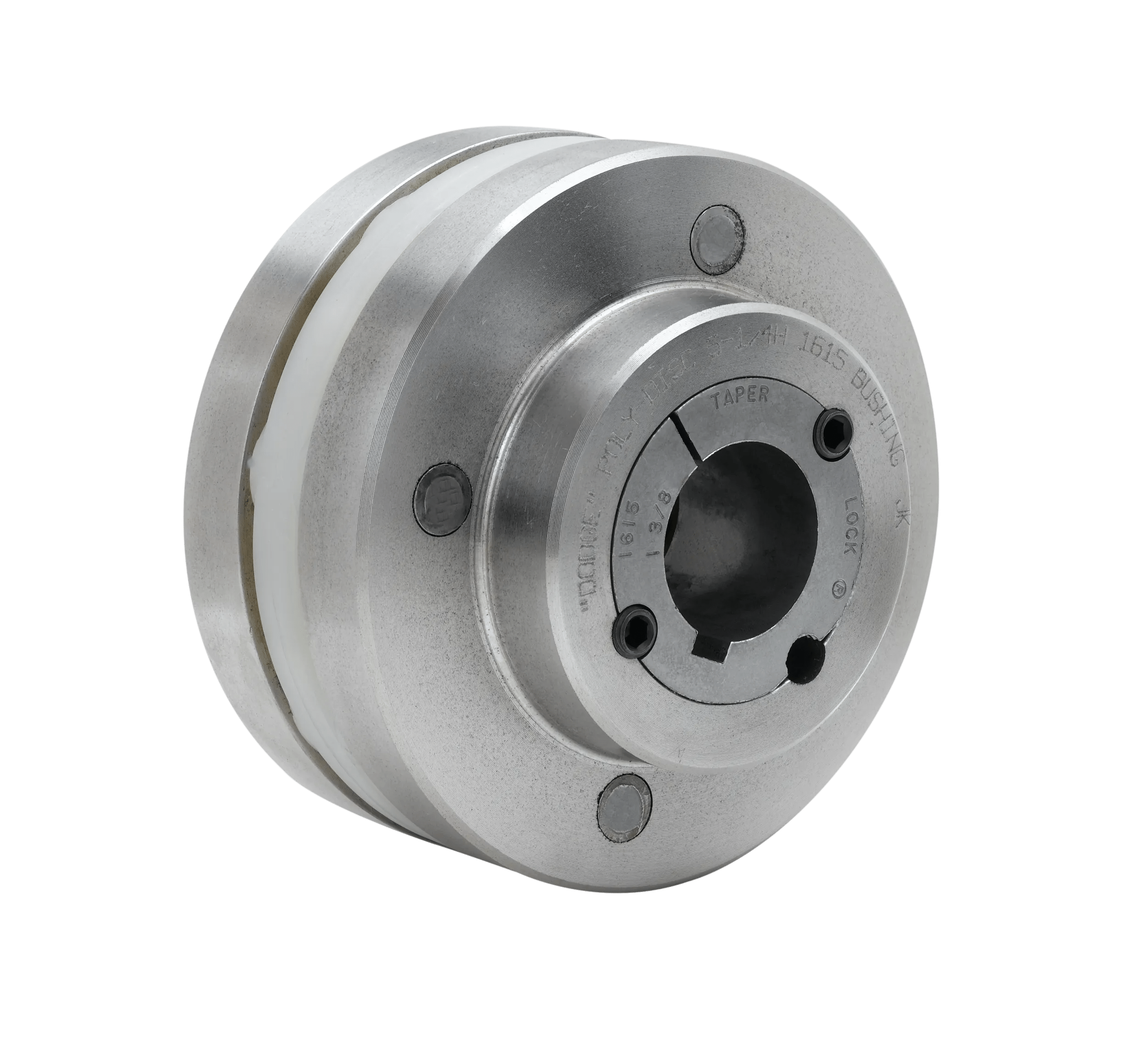 The Dodge® Poly-Disc® coupling features a molded polyurethane disc that helps cushion shock loads and resists chemical attack. Easily assembled, the flexible Poly-Disc® element utilizes spacer buttons to quickly set correct flange spacing, while the fully machined flanges utilize standard Taper-Lock® bushings for easy installation and removal. The Poly-Disc® coupling requires no lubrication or periodic maintenance, ensuring worry-free operation.