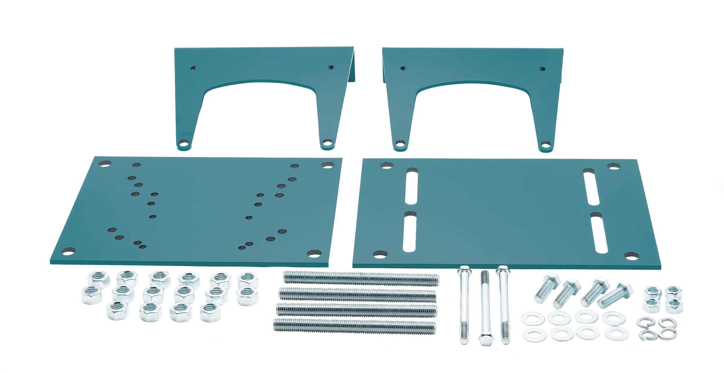 The TAML motor mount has longer support brackets, which allows for more clearance between the conveyor pulley and the bottom plate of the motor mount. The motor mount is a rugged all steel unit which requires no drilling and no foundation. It bolts directly to the top of the Torque-Arm® reducer and can be located in any position around the shaft. It permits easy belt tensioning and accommodates a wide variety of NEMA motor frames. All motor mount fasteners are supplied with zinc-plated finish as standard. Bolt hole configuration will also allow this mount to fasten to the top of a screw conveyor drive reducer of equivalent size.
