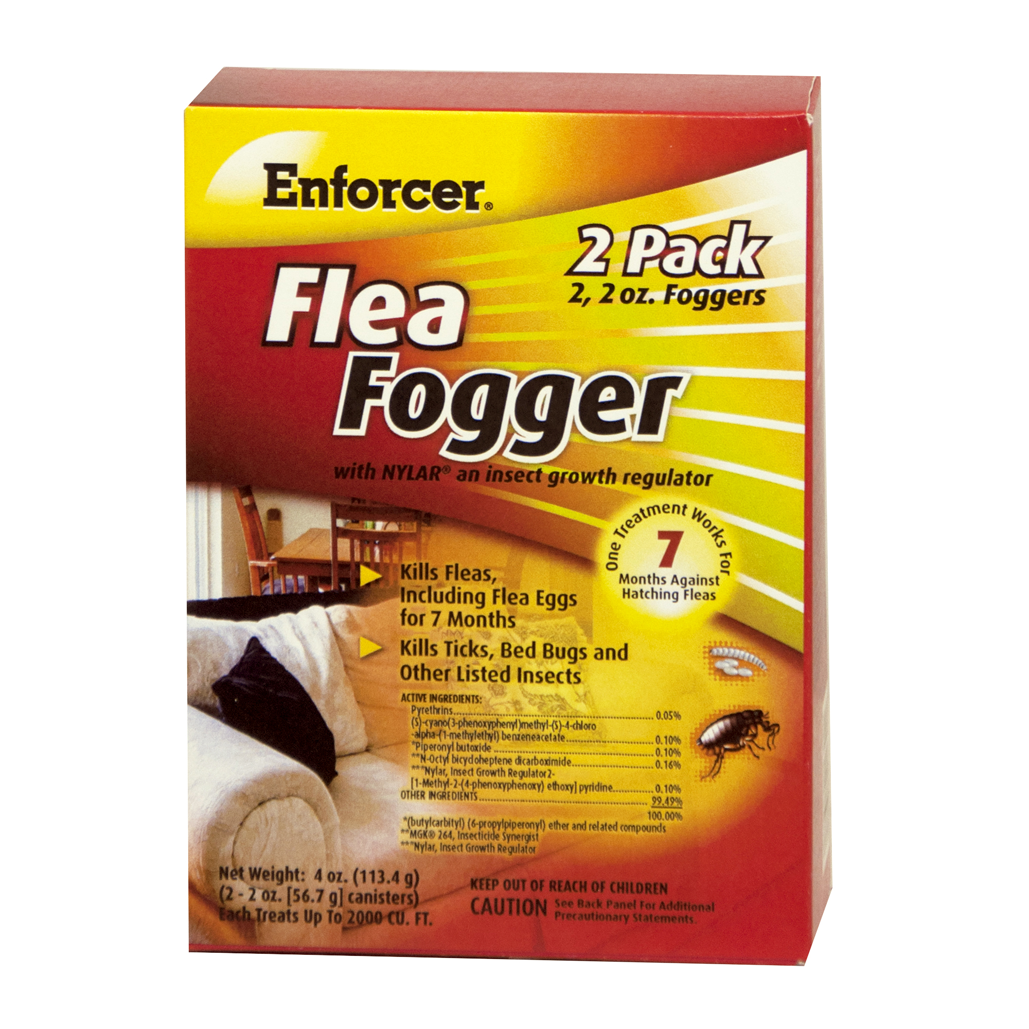 Enforcer Flea Fogger contains a combination of ingredients that kills both adult and hatching fleas. NYLAR the insect growth regulator in this fogger, continues to kill hatching fleas and eggs for 7 months by preventing their development into adults This product does not contain any chemicals known to State of California to cause cancer, birth defects, or any other reproductive harm.