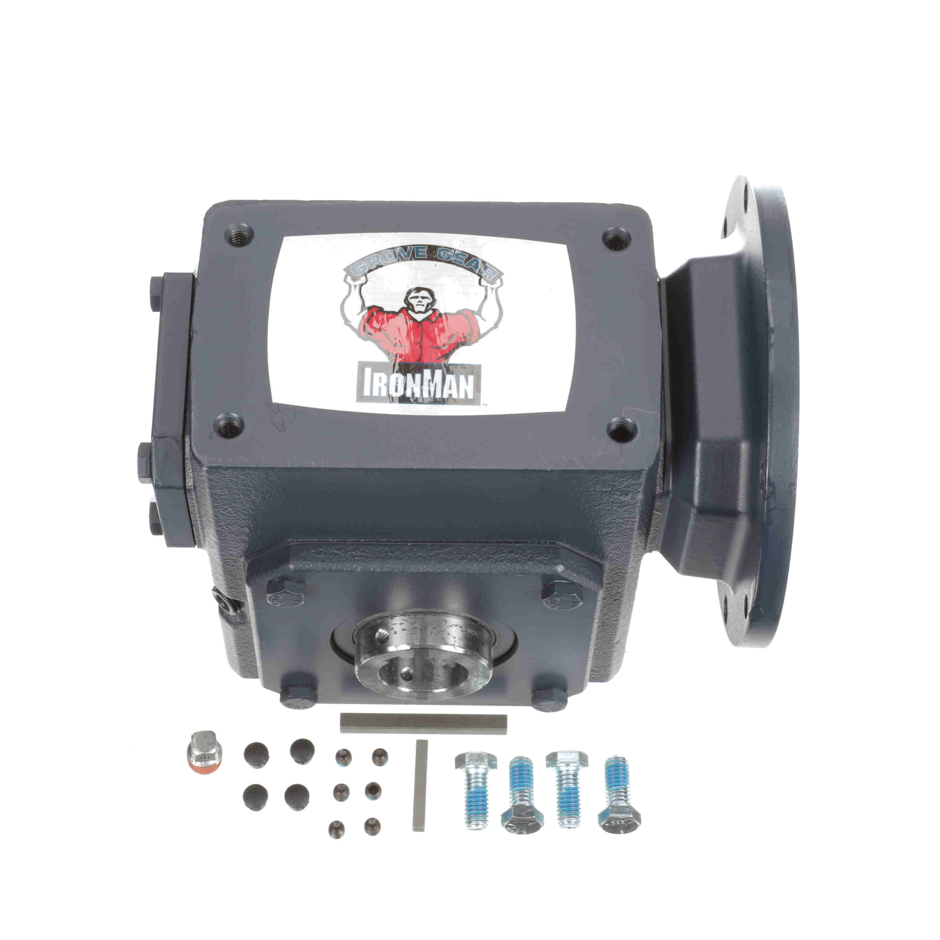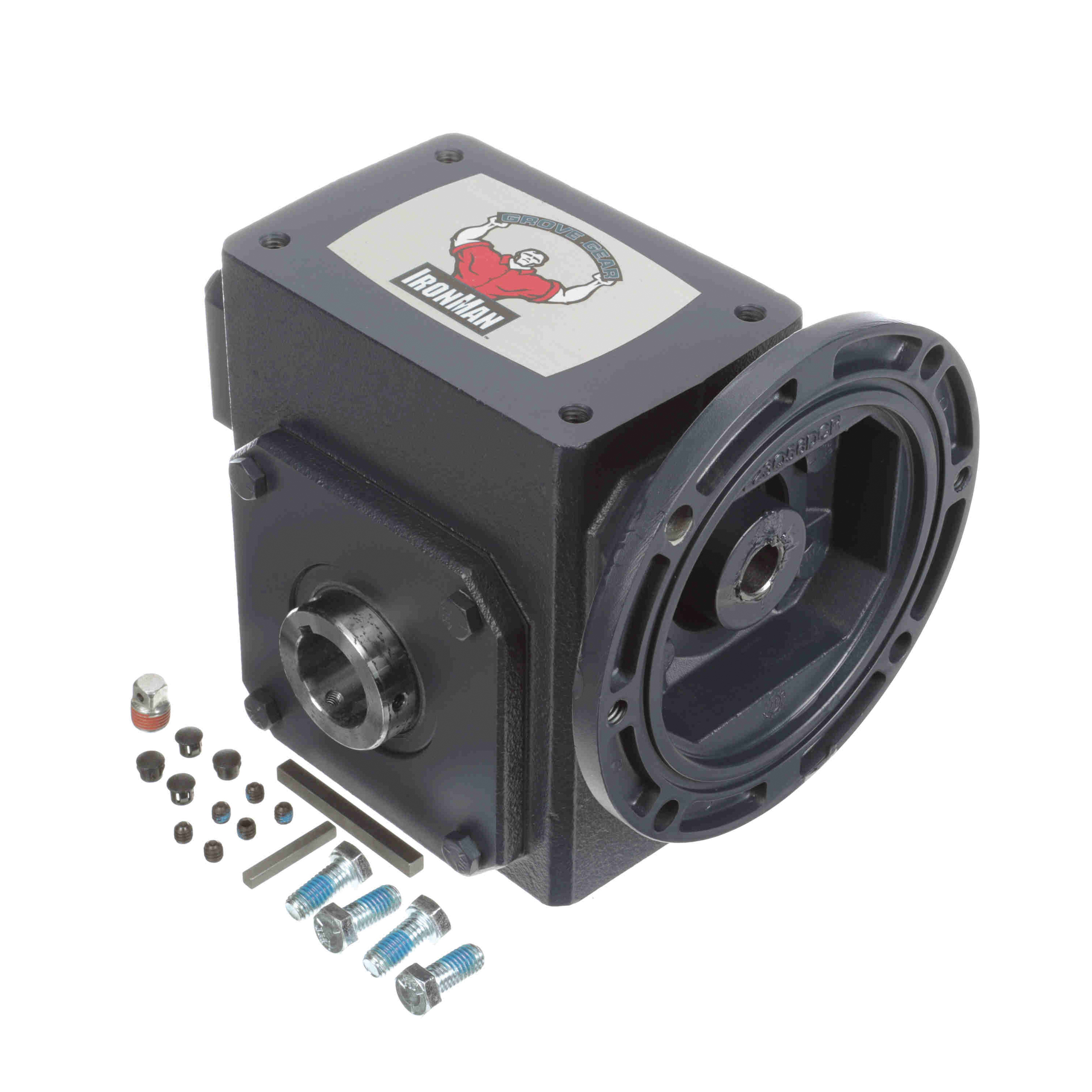 Grove Gear® IRONMAN® Worm Gear Reducer, Right Angle Single Reduction, Series: GR Series, 15:1 Gear Ratio, 2.765 hp Input, 2.439 hp Output, 2 hp Motor, C-Face Quill Input, Hollow Bore Output, 7/8 in Dia Input, 1.438 in Dia Output, 116.7 rpm Output Maximum Speed, 1750 rpm Input Maximum Speed, 1318 in-lb Output, 2.38 in Centre Distance, 3/16 x 3/32 in Input, 3/8 x 3 in Output Keyway, PAG Synthetic Oil Lubrication, Shaft Mount, Cast Iron, 6 in W