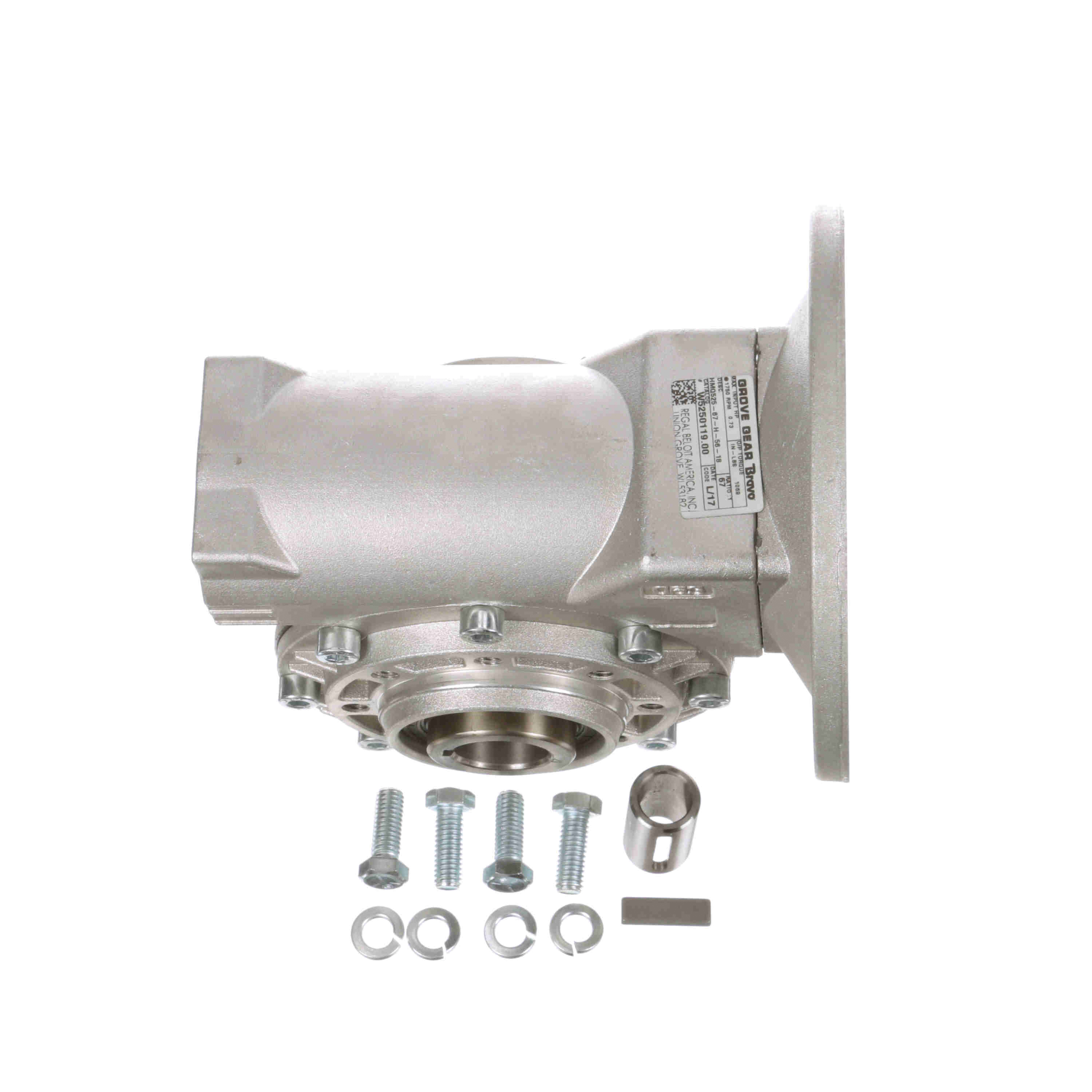 Grove Gear® Worm Gear Reducer, Compact Right Angle Single Reduction, Series: Bravo™ 525, 67:1 Gear Ratio, 0.73 hp Input, 0.44 hp Output, C-Face Quill Input, Hollow Bore Output, 5/8 in Dia Input, 1-1/8 in Dia Output, 26.1 rpm Output Maximum Speed, 1750 rpm Input Maximum Speed, 1069 in-lb Output, 2.48 in Centre Distance, 3/16 x 3/32 in Input, 1/4 x 2 in Output Keyway, PAG Synthetic Oil Lubrication, Shaft Mount, Aluminum