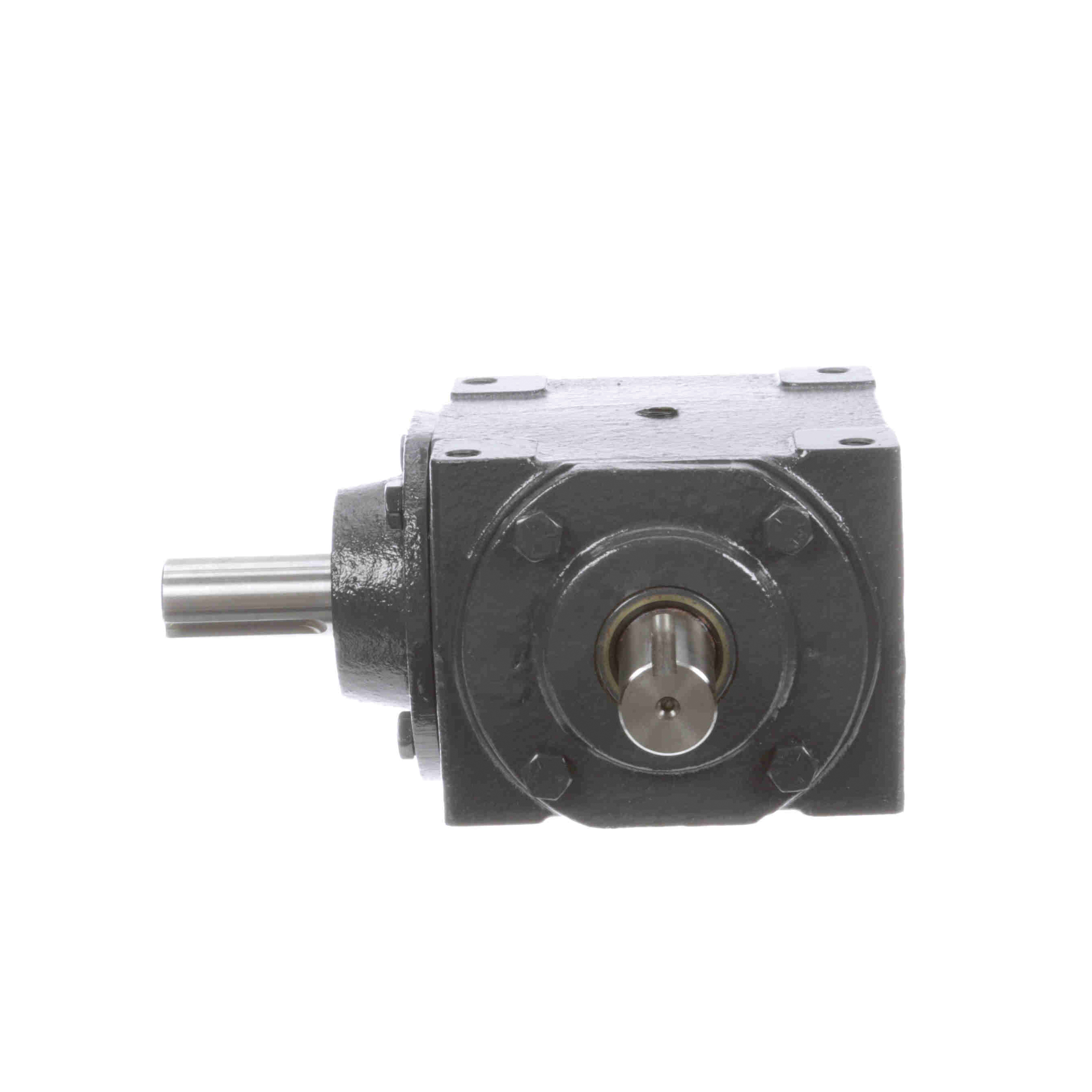 Hub City® Bevel Gear Reducer, Right Angle Spiral Single Reduction Style A B, Series: 150, 2:1 Gear Ratio, 10-1/4 hp, Shaft Input, Shaft Output, 1 in Dia x 2 in L Input, 1 in Dia Output, 875 rpm Output Maximum Speed, 1750 rpm Input Maximum Speed, 736 in-lb, 5-23/32 in Centre Distance, 1/4 x 1/8 in Input Keyway, 97.5 % Efficiency, Conventional Oil Lubrication, Four-Bolt Surface Mount, Cast Iron, 10-3/16 in W x 8-9/32 in D x 4-1/8 in H