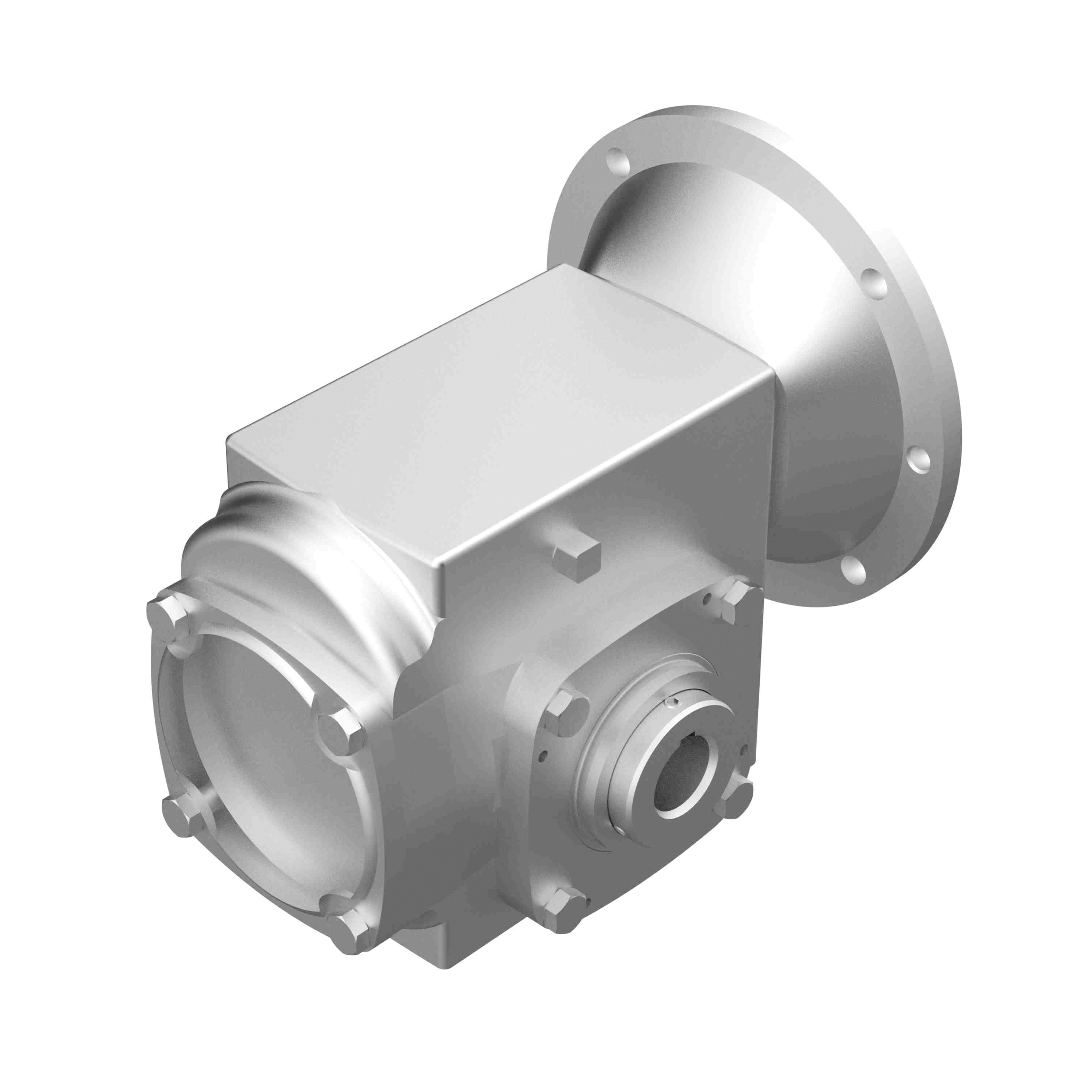 Hub City® CleanLine™ Helical Hypoid Reducer, Double Reduction High Efficiency Right Angle, Series: SSHERA®35, 19.93:1 Gear Ratio, 1.7 hp, C-Face Quill Input, Hollow Bore Output, 5/8 in Dia Input, 1 in Dia Output, 87.8 rpm Output Maximum Speed, 1750 rpm Input Maximum Speed, 1100 in-lb, 2.509 in Centre Distance, 3/16 x 3/32 in Input, 1/4 x 1/8 in Output Keyway, 90 % Efficiency, CCW/CW, PAG Synthetic Oil Lubrication, 316 Stainless Steel, Polished, 7.2 in L x 6 in W x 5.93 in H