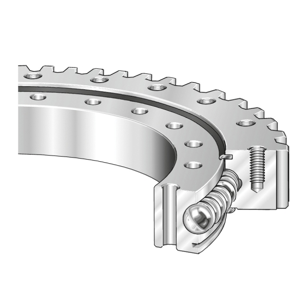 Four-point contact bearings are single-row angular contact ball bearings and therefore require significantly less space in an axial direction than double-row designs. The bearings comprise solid outer rings, split inner rings and ball and cage assemblies with brass or polyamide cages. The two-piece inner rings enable a large complement of balls to be accommodated. The inner ring halves are matched to the particular bearing and must not be interchanged with those of other bearings of the same size. The outer ring with the ball and cage assembly can be mounted separately from the two inner ring halves.