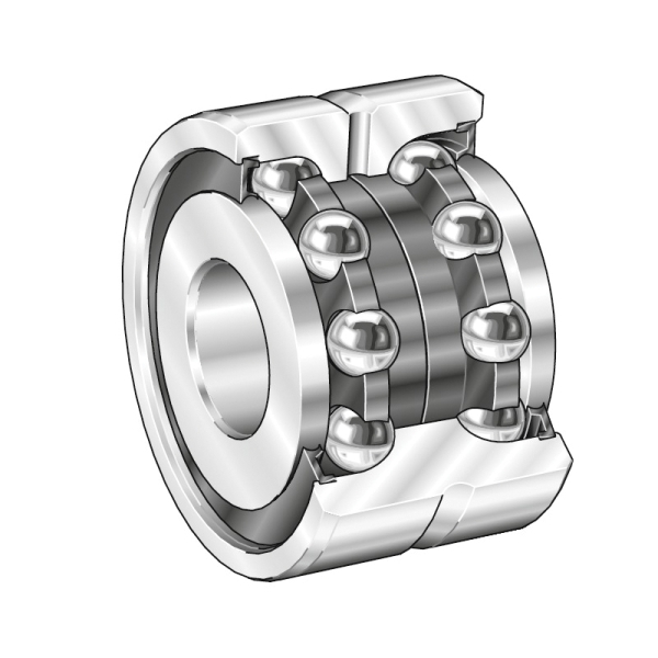 Double-direction axial angular contact ball bearings are precision bearings without self-retention and with restricted tolerances to class SP. They comprise solid-shaft locating washers, spacer rings, housing locating washers and ball and cage assemblies with solid brass cages. The bearing parts are matched to each other and can be fitted separately, but must not be interchanged with parts from bearings of the same size.