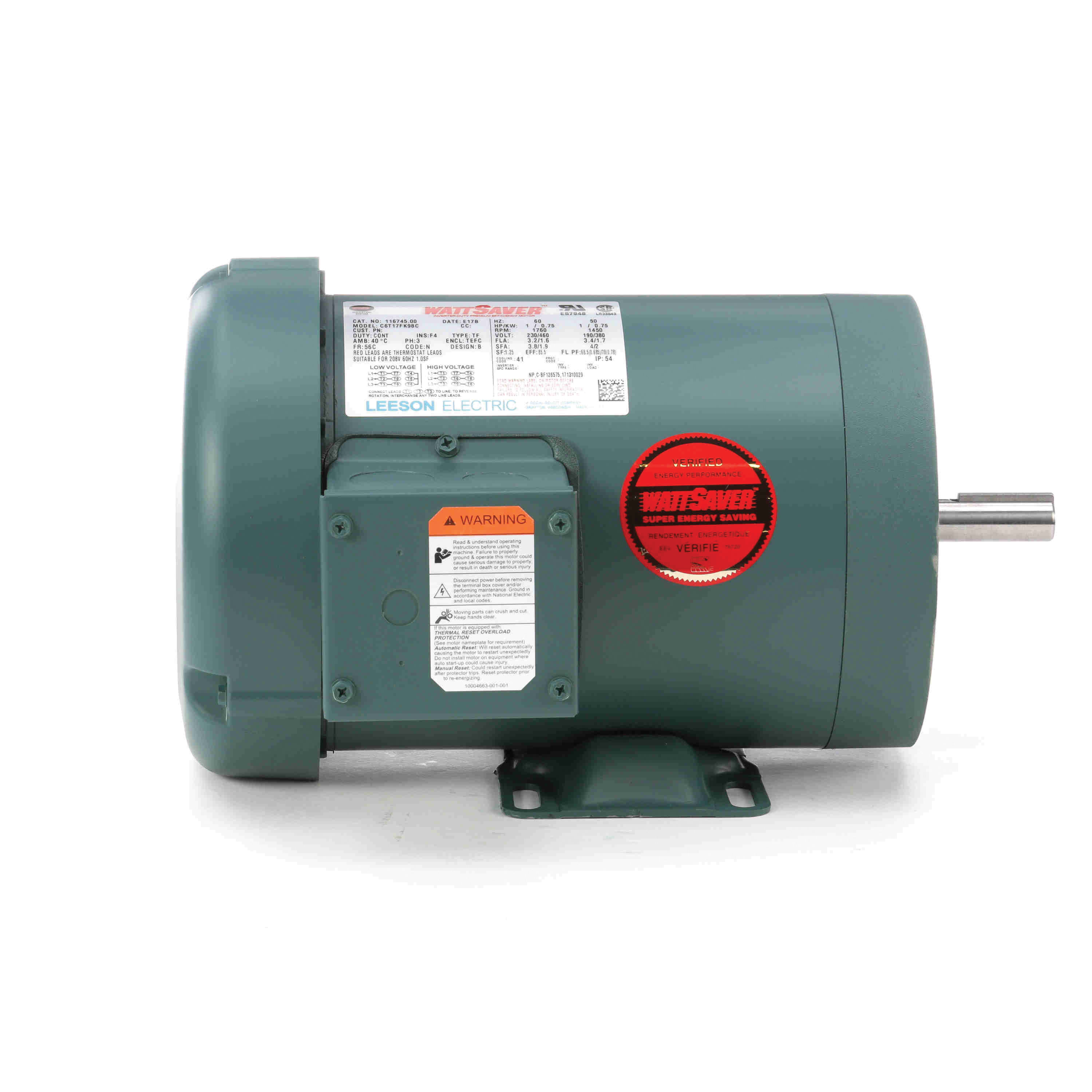 LEESON® Ultimate e® AC Motor, 4-Pole Continuous Duty, General Purpose AC Motors Application, 1 hp, 230/460 VAC, 3.2/1.6 A, 60 Hz Frequency, 3 ph ph, 1760 rpm Speed, 1 Speed, Totally Enclosed Fan Cooled Enclosure, 56C Frame, 0.63 in Dia x 1.88 in L Shaft, Reversible Rotation, 1.25 Service Factor, Ball Bearing, 3 ft-lb Torque, C-Face/Rigid Base Mounting, 40 deg C, Insulation Class: Class F, Rolled Steel, 10:1 Variable Torque Speed, 12.48 in L Dimensions