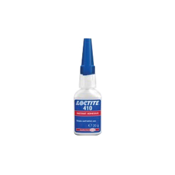 Loctite® Instant Adhesive, 1-Part High Viscosity, Series: Prism® 410™, Bottle, 20 g, Composition: Ethyl 2-Cyanoacrylate, Filler, Carbon Black, Hydroquinone, Liquid, 90 sec Setting Time, 24 hr Curing, Black, Sharp Irritating, -65 to 225 deg F, 1.1 Specific Gravity, 176 to 199.4 deg F Flash, <20 g/L VOC, 3500 cPs Viscosity Rating, Flammability: 4, Applicable Materials: Plastic, Metal and Rubber, 2680 psi Tensile, 3200 psi Shear Strength