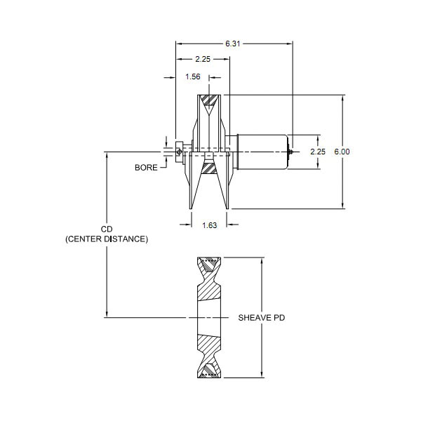 Lovejoy® Spring Loaded Driver Pulley, Two-Side Moveable, Series: Aluminoline Series, 1/2 in Bore, 6 in OD, 6.31 in Overall Length, For Use With: Standard A Variable Speed Drives, Aluminum
