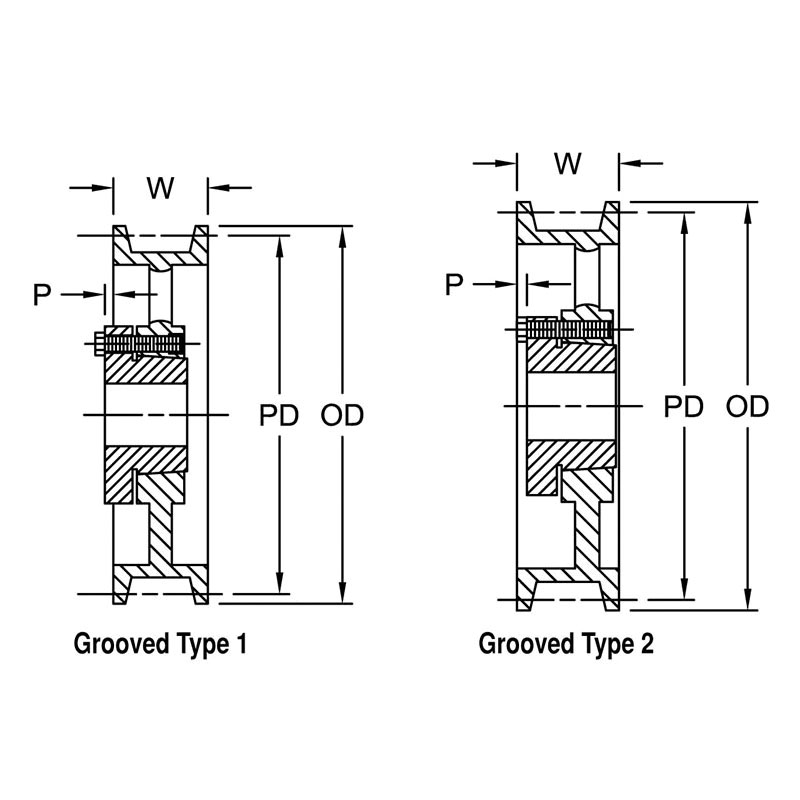 Lovejoy® companion sheaves are made of durable cast iron to assure best possible wear at the belt contact area. Grooved sheaves, for use with V-V adjustable center drives, are machined to match the belt width and angle of standard variable speed belts for optimum efficiency. The spoked design provides strength and light weight. All companion sheaves are precision balanced for smooth running. The sheaves are bored to accept standard type tapered bushings for ease of installation, best possible shaft grip and removal from the shaft without damage to any of the parts.