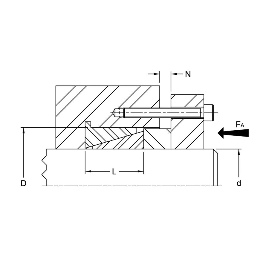 Lovejoy® Internal Shaft Locking Device, Low Torque, Series: SLD 350 Series, 24 mm Bore, 28 mm OD, 0.945 in Diameter Hub, 62.3 ft-lb Transmissible Torque, 20595 psi Shaft Contact Pressure, 14504 psi Hub Contact, Metallic Collar/Steel Screw, Silver