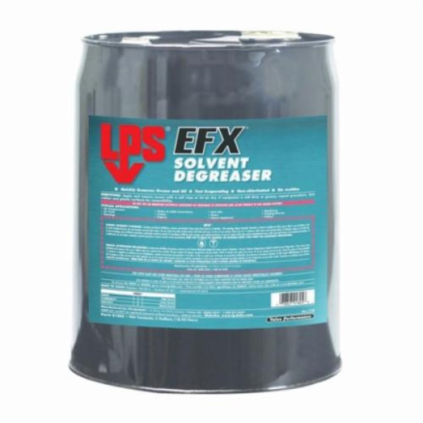 LPS® Degreaser, Solvent, Series: EFX®, 5 gal, Metal Pail, 5 gal Net Weight, Liquid, Clear, Characteristic, 90%, 720 g/L, 6 lb/gal VOC, 0.65 to 0.68 Specific Gravity, Composition: Heptane, Acetone, Isopropanol