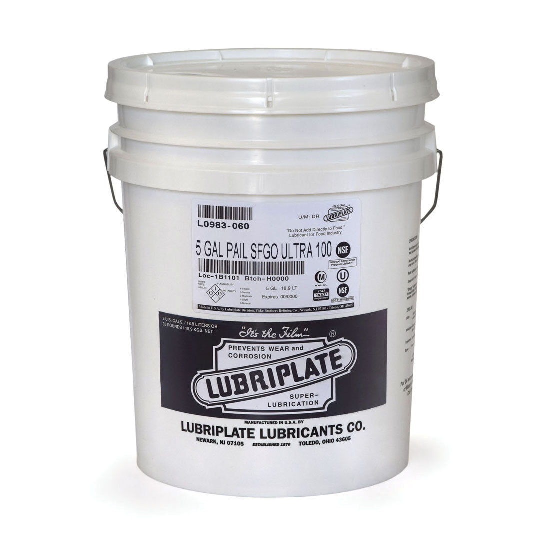 Lubriplate® Fluid Lubricant, Multi-Purpose, Series: SFGO Ultra 100, Pail, 5 gal, Polyalphaolefin (PAO)-Based Synthetic Base, Liquid, Water White, Odor/Scent: Odorless, 0.84 to 0.86 Specific Gravity, 485 deg F Flash, 556 SUS at 100 deg F Viscosity, -43 deg F Pour, Flammability: 1, Grade ISO 100