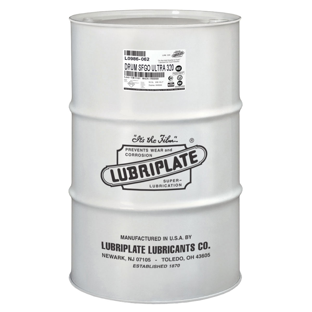 Lubriplate® Fluid Lubricant, Multi-Purpose, Series: SFGO Ultra 320, Drum, 55 gal, Polyalphaolefin (PAO)-Based Synthetic Base, Liquid, Water White, Odor/Scent: Odorless, 0.84 to 0.86 Specific Gravity, 520 deg F Flash, 1557 SUS at 100 deg F Viscosity, -40 deg F Pour, Flammability: 1, Grade ISO 320