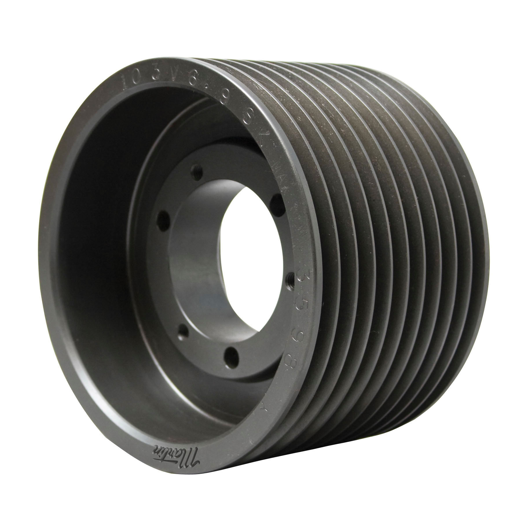 Martin Hi-Cap® 10 3V 1060 E Type A Web Wedge Sheave, 1 to 2-7/8 in Bushed Bore, 10.6 in OD, 10 Grooves, 10.55 in Dia Pitch, 4-11/32 in W Face