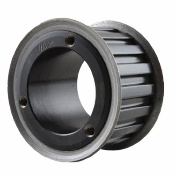 Martin timing pulleys are manufactured to extremely close specifications and are stocked in minimum plain bore, taper bushed, QD bushed styles depending on size and pitch. Synchronous sprockets are non-slip toothed drives that require no lubrication. These sprockets have a wide speed range, are very efficient and make less noise than chain drives. Teeth on the belts are molded to conform with and engage the teeth on a mating sprocket.