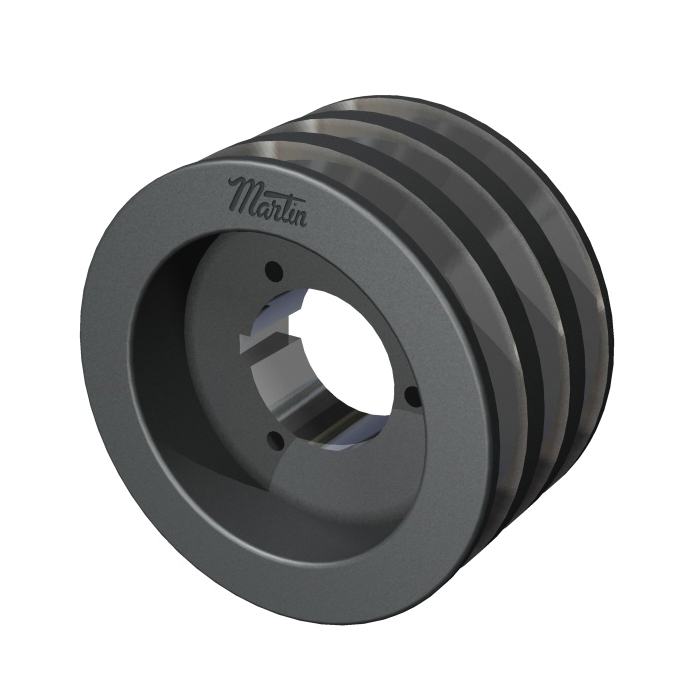 Martin Conventional Sheave, Type S Solid, Bushed Bore, 0.75 to 2.688 in Bore, 5-3/4 in OD, 5.4 in Pitch Diameter, 3 Grooves, 2-1/2 in Face Width, MST® Q1 Bushing, For Use With: A/B Cross Section Belts, Steel