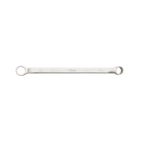 Martin 8735 Double Box End Wrench, 1 x 1-1/8 in Wrench, 12 Points, 45 deg Offset, 15.313 in OAL, Forged Alloy Steel, Satin Chrome