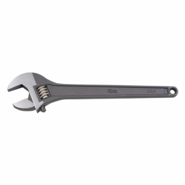 Martin Adjustable Wrench, 2-3/16 in Wrench Opening, 18 in Overall Length, 2-3/16 in Jaw Width, 23/32 in Jaw Thickness, 22.5 deg Head, Non-Cushion Grip/Thin Tapered Handle, Alloy Steel Body, Alloy Steel, Industrial Black