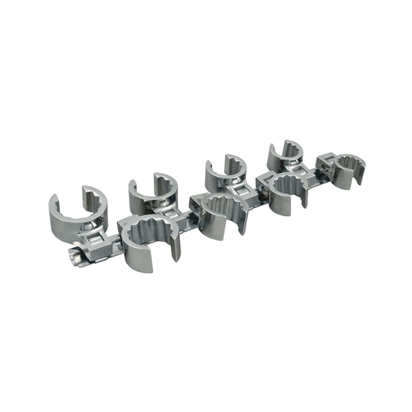 Crowfoot socket wrench attachments are drop forged from steel bar. These wrenches are available in drive sizes of 3/8 in and 1/2 in, in 12 point flare-nut openings in fractional sizes. They come in chrome and industrial black finish. These are special purpose attachment heads designed to accept either a socket wrench handle or extension piece, for use in tightening or loosening nuts which are in odd positions. The 12 point flare nut design provides extreme flexibility in addressing these situations. The extra head thickness provides maximum surface contact area and helps prevent marring of fittings.