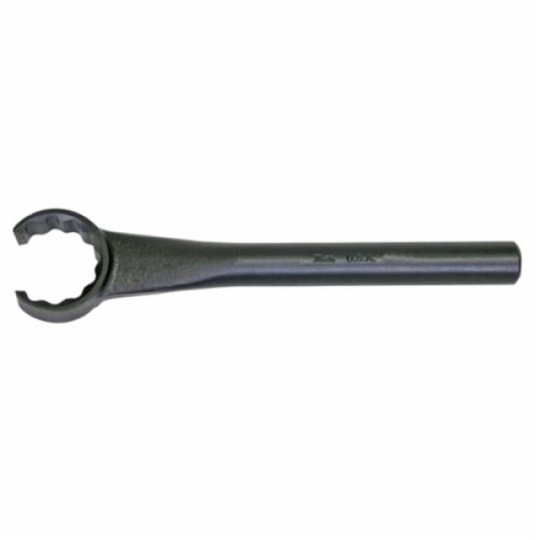 Flare Nut wrenches are drop forged from steel bar. These wrenches are available in fractional sizes only from 3/8 through 1-1/2 in. They come in a Chrome or Industrial Black finish. Flare nut wrenches are similar to box end wrenches, except they do not completely encircle the nut. They are special purpose single end wrenches designed for use on flare nuts and fittings on tubing assemblies primarily for hydraulic, pneumatic and air conditioning equipment. The 12 point hex open box slips over the tubing. The thick head face helps to prevent the marring of fittings.