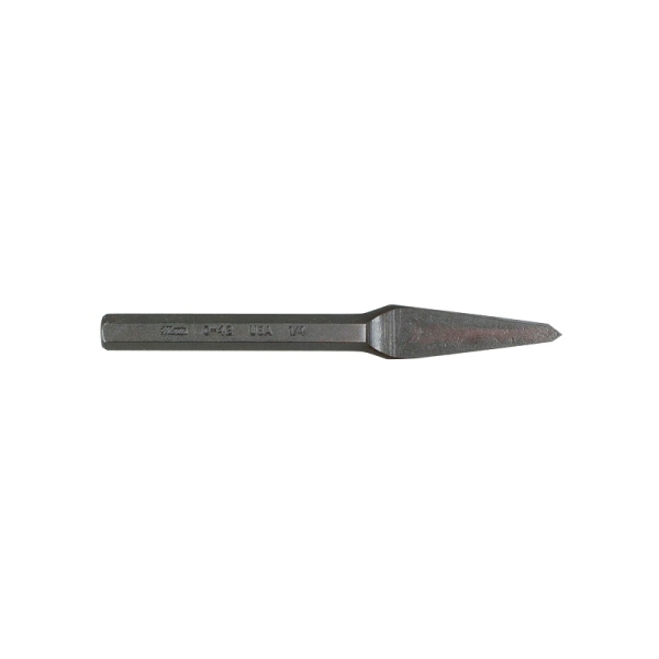 Cape chisels are drop forged, heat treated, quenched and tempered carbon steel construction. Available in 1/8 in, 3/16 in and 1/4 in point sizes. These are special purpose hand tools with cutting edge designed for cutting, shaping or removing metal softer that itself when struck with a hammer. They are generally used in locations such as grooves, key ways and slots.