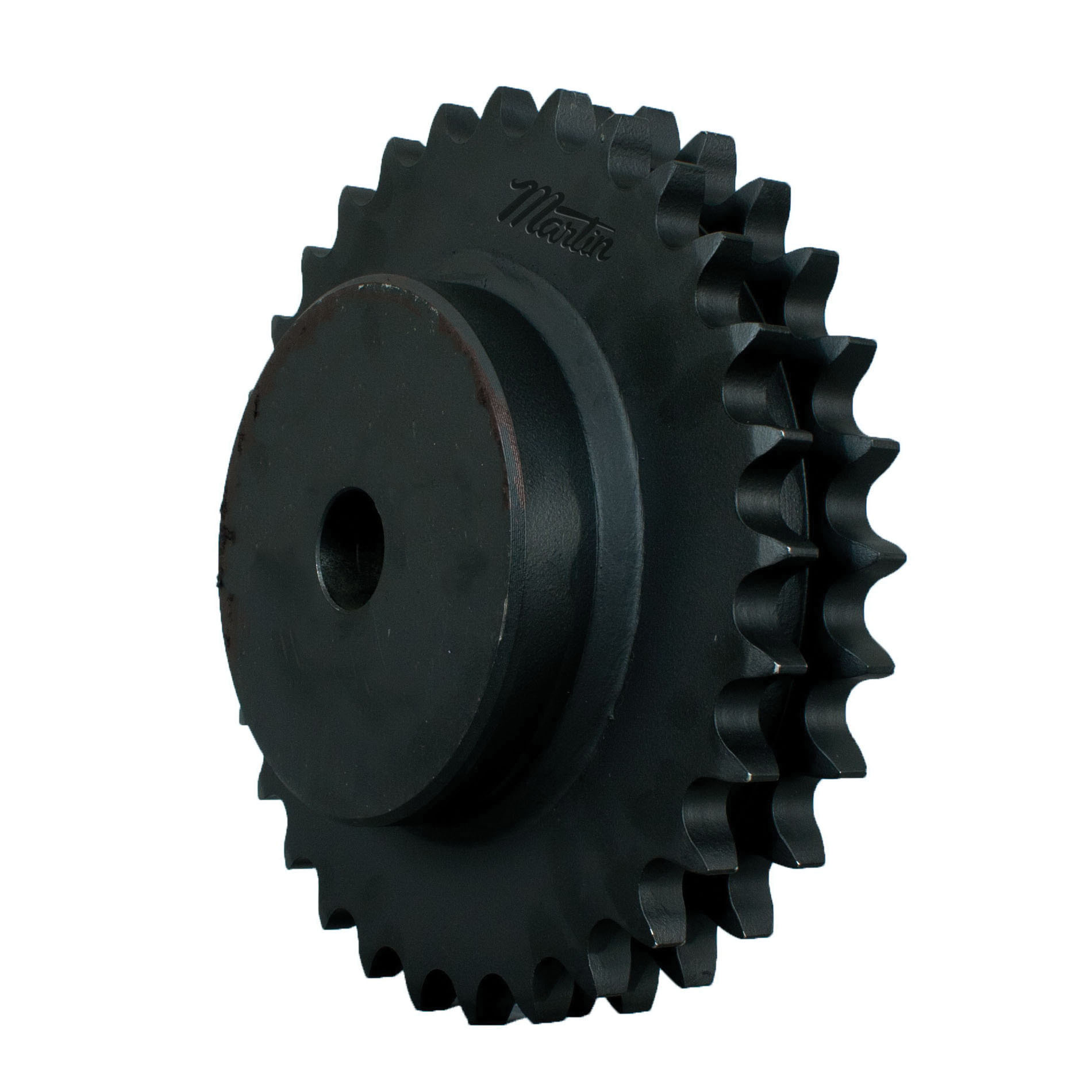 Martin double strand solid construction sprockets have proper spacing between chain rows. The sprockets are manufactured from high carbon steel. Martin does not stack "A" plates on multiples, but instead Martin machines teeth after the chain rows are already in place. These plain bore sprockets can easily be bored to a metric or standard size to fit your application. Keyways, setscrews and harden teeth are quick alterations that can be made.