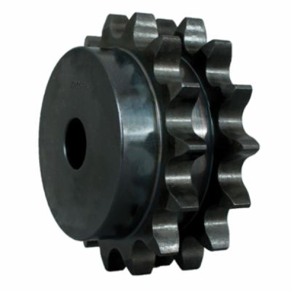 Martin double strand solid construction sprockets have proper spacing between chain rows. The sprockets are manufactured from high carbon steel. Martin does not stack "A" plates on multiples, but instead Martin machines teeth after the chain rows are already in place. These plain bore sprockets can easily be bored to a metric or standard size to fit your application. Keyways, set screws and hardened teeth are quick alterations that can be made.