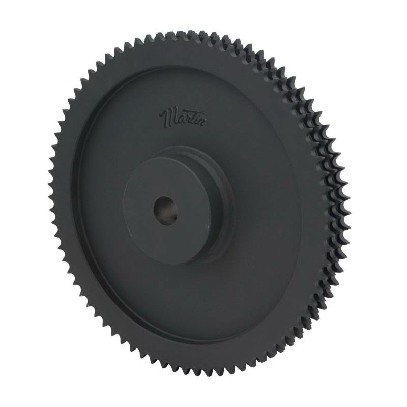 Martin metric triple strand solid construction sprockets have proper spacing between chain rows. The sprockets are manufactured from high carbon steel. Martin does not stack "A" plates on multiples, but instead Martin machines teeth after the chain rows are already in place. These plain bore sprockets can easily be bored to a metric or standard size to fit your application. Keyways, set screws and harden teeth are quick alterations that can be made.