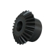 Martin stock miter gears are manufactured from 0.4 carbon steel. The "M" series is furnished unhardened with plain bore. The "HM" series is furnished hardened teeth with plain bore. The "HMK" series is furnished hardened teeth with keyway and setscrew for installation on the shaft. Hardened miter gears have approximately 50% more horsepower capacity and provide greater gear wear than untreated gears. All Martin miter gears are cut with the 20 deg pressure angle system.