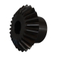 Martin stock miter gears are manufactured from 0.4 carbon steel. The "M" series is furnished unhardened with plain bore. The "HM" series is furnished hardened teeth with plain bore. The "HMK" series is furnished hardened teeth with keyway and setscrew for installation on the shaft. Hardened miter gears have approximately 50% more horsepower capacity and provide greater gear wear than untreated gears. All Martin miter gears are cut with the 20 deg pressure angle system.