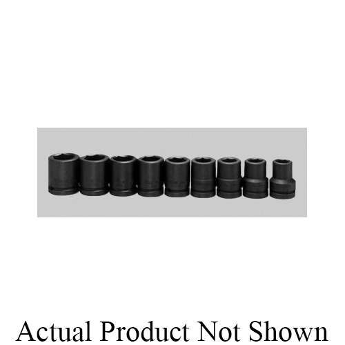 This is a set of 9 deep impact sockets. Power/impact socket wrenches are drop forged from steel bar. These wrenches are available in drive sizes of 3/8 in, 1/2 in, 3/4 in, 1 in and 1-1/2 in. These sockets have a 6 point opening. They are available in industrial black finish. These special purpose wrenches are designed for use in a wide range of sizes and capacities. All have square drives and drive size is a measure of capacity. As detachable socket wrenches provide an almost endless combination of handles, attachments and sockets, it is possible to assemble a proper tool for almost any type of service within the tool's capacity.