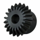 Martin stock miter gears are manufactured from 0.4 carbon steel. The "M" series is furnished unhardened with plain bore. The "HM" series is furnished hardened teeth with plain bore. The "HMK" series is furnished hardened teeth with keyway and setscrew for installation on the shaft. Hardened miter gears have approximately 50% more horsepower capacity and provide greater gear wear than untreated gears. All Martin miter gears are cut with the 20 deg pressure angle system.