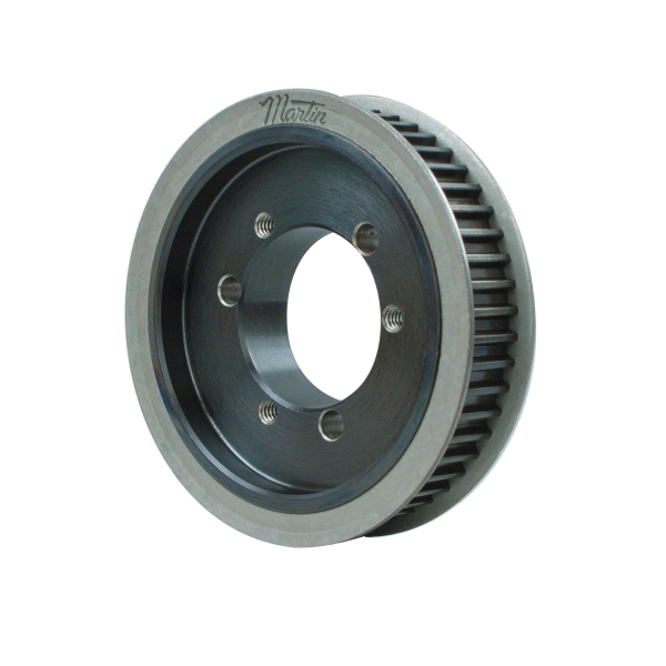 Martin timing pulleys are manufactured to extremely close specifications and are stocked in minimum plain bore, taper bushed, QD bushed styles depending on size and pitch. Synchronous sprockets are non slip toothed drives that require no lubrication. These sprockets have a wide speed range are very efficient and make less noise than chain drives. Teeth on the belts are molded to conform with and engage the teeth on a mating pulley.