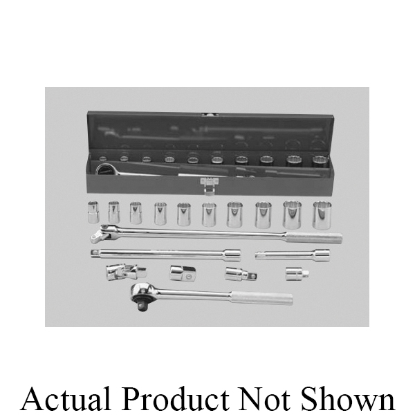 Martin S18K Imperial Socket Set, Metal Box Tool Storage, 1/2 in Drive, 12-Point, 18 Pieces, Alloy Steel