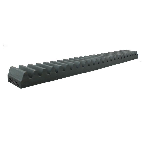 Martin rack is made from low carbon cold drawn steel. It is available in 14-1/2 deg and 20 deg pressure angle in 2, 4, and 6 foot lengths. Allowance is made for cutting and machining. Pinions to run with the rack may be selected from the spur gear section of the catalog. Special rack can be supplied in other materials, sizes, and pitches. Each Martin facility can mill and match rack for longer continuous runs.