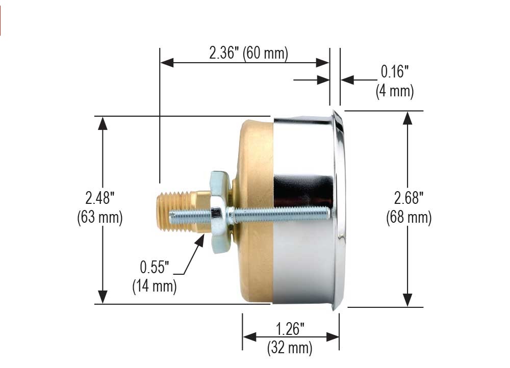 2-1/2", 30 to 300 ºF/ºC Armored Copper Capillary, 40 ft, 1/2" National Pipe Thread (NPT) Union Copper Bulb, 4-1/2" x 3/8" Vapor Thermometer with Glycerin Fill, Chrome Bezel, and U-Clamp