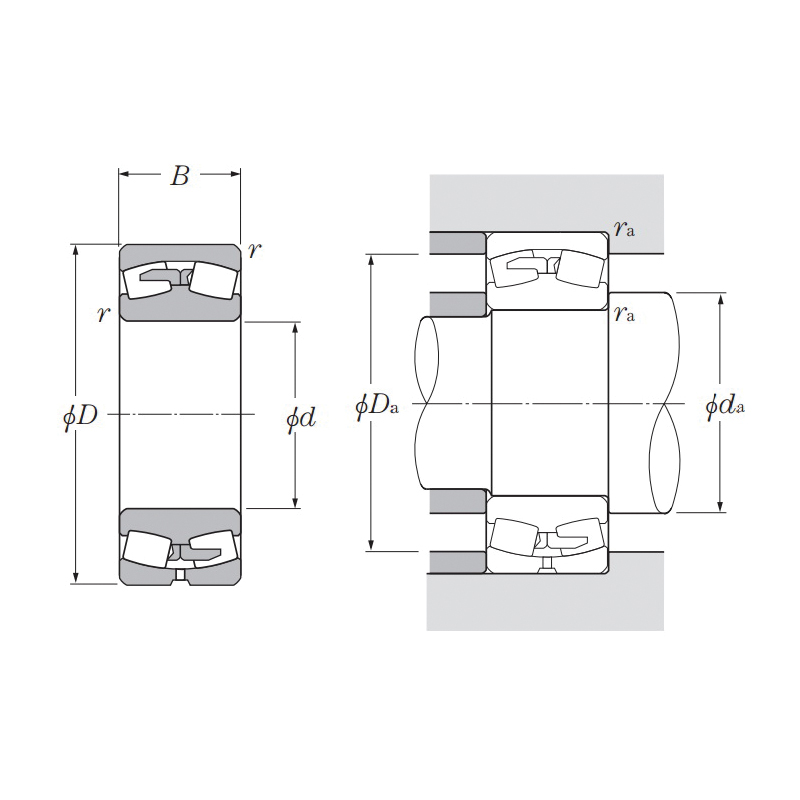 Spherical roller bearings equipped with an outer ring with a spherical raceway surface and an inner ring which holds two rows of barrel shaped rolling elements, NTN spherical roller bearings are able to adjust center alignment to handle inclination of the axle or shaft. There are variety of bearing types that differ according to internal design. Spherical roller bearings include as type equipped with an inner ring with a tapered bore. The bearing can easily be mounted on a shaft by means of an adapter or withdrawal sleeve. The bearing is capable of supporting heavy loads, and is therefore often used in industrial machinery. When heavy axial load is applied to the bearing, the load on rollers of another row is disappeared, and can cause problems. Attention must therefore be paid to operating conditions.
