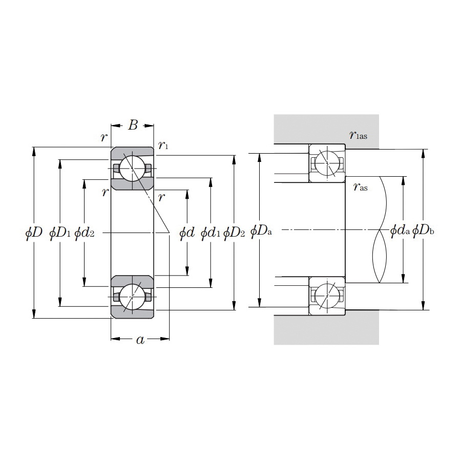 Angular contact ball bearings are non-separable bearings which have a certain contact angle in the radial direction relative to the straight line that runs through the point where each ball makes contact with the inner and outer rings. In addition to radial loads, single direction axial loads can also be accommodated by angular contact ball bearings. Furthermore, since an axial load is generated from a radial force, these bearings are generally used in pairs facing each other. Standard type, high speed use type and ultra high speed varieties of angular contact ball bearings are available through NTN, and there are also many duplex varieties. A bearing accuracy of JIS Class 5 or higher is applied to duplex type angular contact ball bearings, and in many cases they are given a preload, in compliance with standard preload levels, before being used in an application.