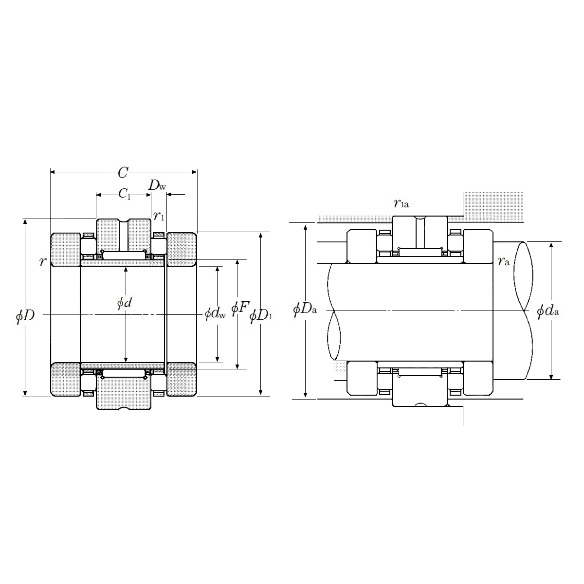 NTN complex bearing is composed of a radial needle roller bearing to support radial load and a thrust ball bearing or a thrust roller bearing to support axial load which are integrated into one bearing unit. Comparing with individual use of a radial bearing and a thrust bearing for the same purpose, this complex bearing saves the required installation space and thereby can contribute to making the overall construction of an equipment more compact.