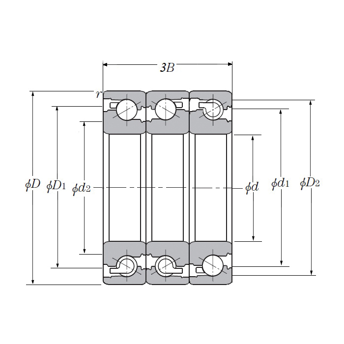 NTN BST30X62-1BDBTP4 ULTAGE® BST Round Bore Angular Contact Thrust Ball Bearing, 30 mm Dia Bore, 62 mm OD, 3 Rows, 45 mm W, 118000 N Load