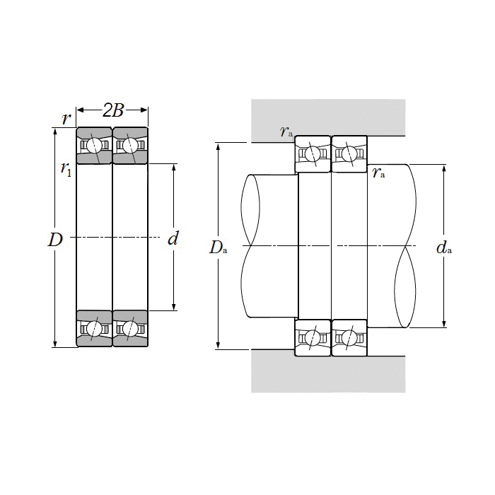 NTN Angular Contact Ball Bearing, Round Bore, Series: HSB, 45 mm Bore Dia, 68 mm Outside Dia, 2 Rows, 24 mm W, 15 deg Contact, Open Closure, High Carbon Chrome Steel Bearing, Phenolic Cage, -40 to 120 deg C