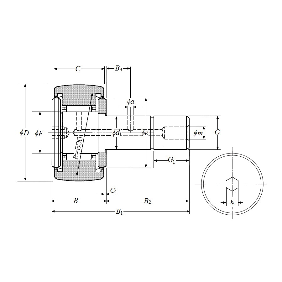This is a track roller complete with stud instead of inner ring, which is designed to operate with its outer ring rolling on the track. These NTN stud type track rollers are applied to eccentric roller, guide roller, rocker arm roller and more. similarly to the roller followers. One end of the stud is threaded and the hexagonal nut is used to be mounted easily.