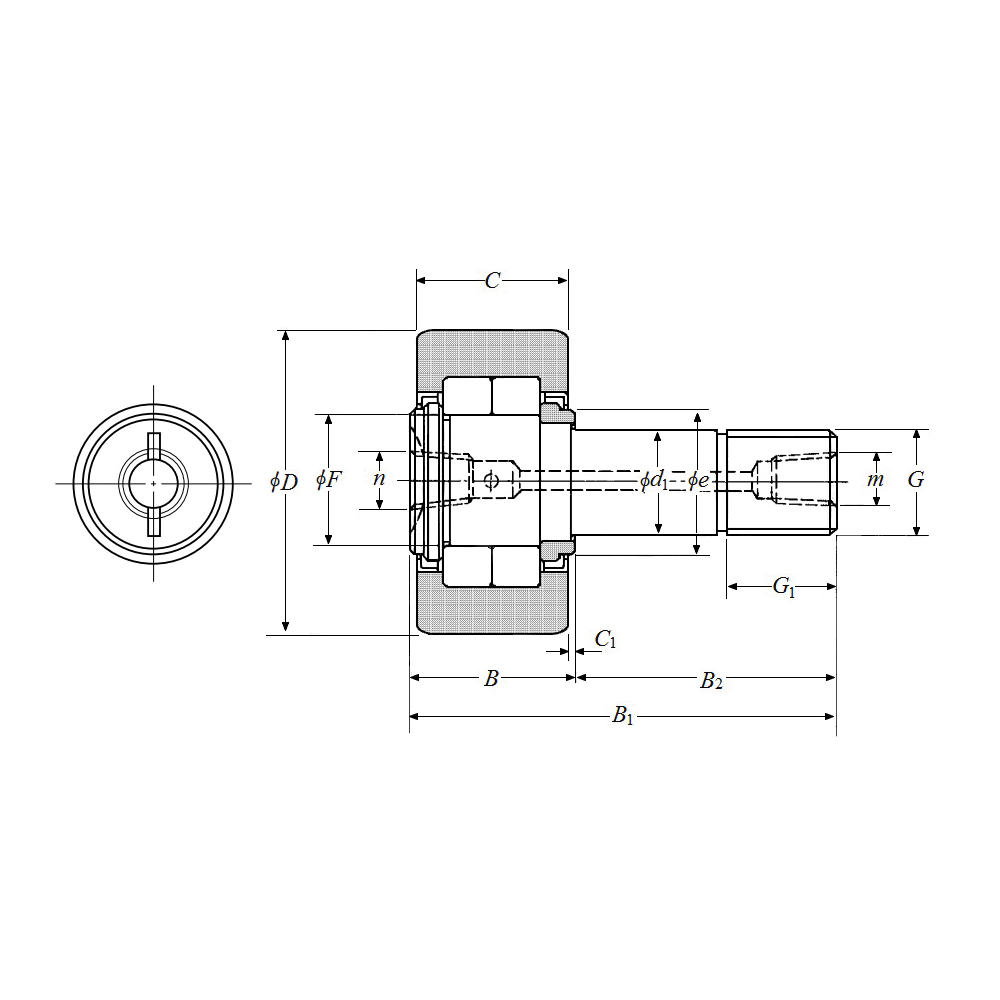 This is a track roller complete with stud instead of inner ring, which is designed to operate with its outer ring rolling on the track. These NTN stud type track rollers are applied to eccentric roller, guide roller, rocker arm roller and more. similarly to the roller followers. One end of the stud is threaded and the hexagonal nut is used to be mounted easily.