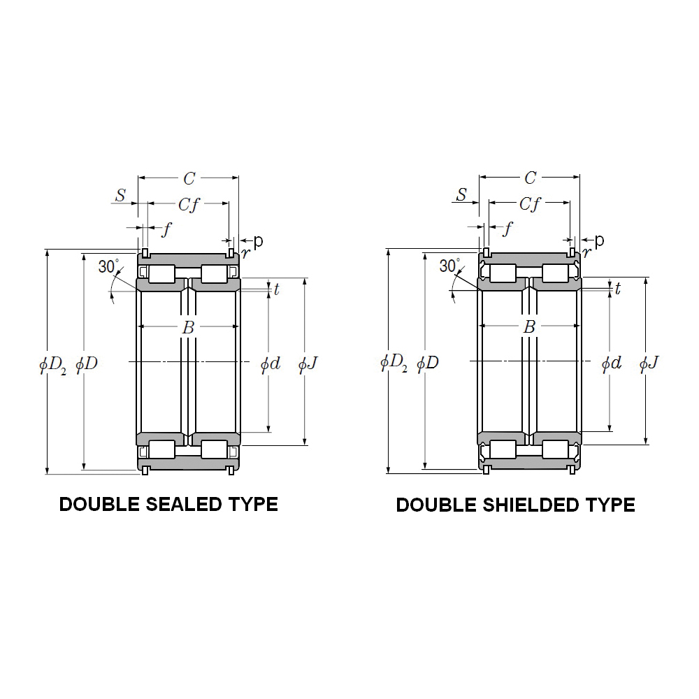 The rollers of the cylindrical roller bearings make line contact with the raceways, these bearings can support heavy radial loads and are suitable for high speed operation. Assembly and disassembly are comparatively easy even if the inner or outer ring requires a shrink fit, as the bearing is a separation type. Cylindrical roller bearings are classified as single row, double row and four row type, according to how many rollers are used, although designed as a thin wall type, the SL Model double row cylindrical roller bearing can support enormous radial and impact loads.