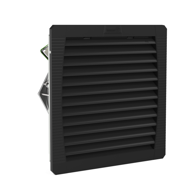 The 4th generation Pfannenberg filterfans is the culmination of 60 years experience in thermal management. Using filterfans is the most efficient and cost. effective way to remove heat from the electrical cabinet at ambient temperatures below target internal. The front cover of this product has the color RAL9011 (Black). The advantages of the series at a glance:. High air flow (155 CFM) in small package with low energy consumption. Uniquely high air flow due to optimized louvre design. NEMA Type 12, closed frame prevents unfiltered air from penetrating. Includes G4 filter class fluted material filter media that can be replaced easily and in seconds due to the optimized front cover. Patented tool-free 4-corner fastening system enables installation in seconds and guarantees a secure hold. Poured foam seal facilitates the installation. Flat shape and neutral design make a perfect integration into existing machines possible. The filterfans can be retrofitted in most applications because the mounting cut. outs are compatible.
