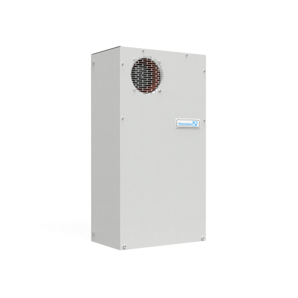 Our DTS 3141 (NEMA Type 12) indoor series cooling unit utilizes a long internal air path to capture heat above the components and provide cool air below. Available in 3 models; DTS 3141 (NEMA Type 12) for indoor use, DTS 3161 (NEMA Type 3R/4) designed for outdoor use, and the stainless steel DTS 3181 (NEMA Type 4/4x) designed for washdown applications. Closed loop design prevents external contaminants from entering the cabinet by isolating ambient air from internally conditioned air. Thermal overload protection ensures the longevity of the compressor by incorporating temperature switches in both compressor and fan motors, automatically shutting down the unit to prevent damage from excessive temperatures. Thermal expansion valve optimizes refrigerant flow for efficient performance across all temperatures. High-pressure cutoff switch ensures pressure overload protection by shutting down the compressor in case of excessive pressure in the refrigeration circuit. High ambient performance in our NEMA Type 12 and outdoor units for environments that require cooling where the maximum ambient temperature is 131 F. Hermetically sealed compressor never needs recharging, maintaining 100% cooling efficiency. ERP efficiency certified components compliant with Kyoto Protocol's CO reduction standards and ERP Directive for fan efficiency ratings. Rugged Design is well. suited for manufacturing environments and can be easily painted to match enclosures or machines. Environmentally Friendlier R134a refrigerant for easier service and minimal environmental impact. The DTS 3161 NEMA 3R and DTS 3181 NEMA 4/4X cooling units feature a special corrosive protectant coating on ambient. side pipes and coils, ensuring maximum protection against saltwater, sour gas, and other corrosive substances. High airflow backward curve impeller fan with a long-lasting, single-bearing design outperforms standard two-bearing blowers, boasting nearly double the lifespan. The DTS 3161 NEMA 3R and DTS 3181 NEMA 4/4X cooling units are uniquely designed to be self. protected in outdoor and washdown environments. An example of this is the location of our control electronics within our dry, cool interior circuit. Maintenance free, wide fin filter. less design is less susceptible to clogging from dirt buildup which can cause the unit to work harder and hamper efficiency. Active condensate collection pan, eliminating the need for drain tubes and buckets. The heater activates only when required to conserve power.