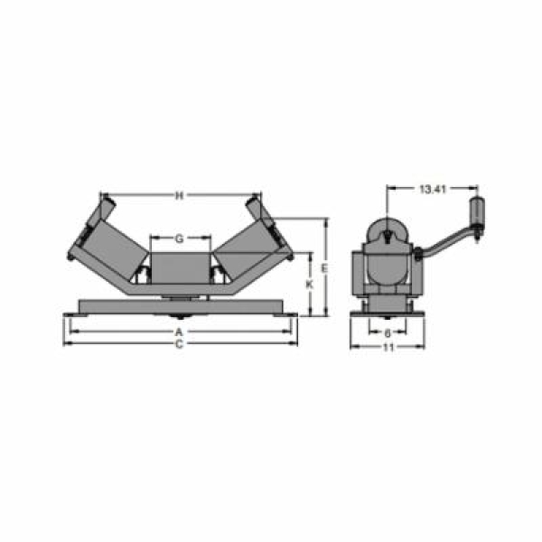PPI® B4-35TESA-14SB Trougher Equal Self-Aligner Idler, B CEMA Rating, 4 in Dia Roll, 35 deg Trough Angle, 14 in W Belt