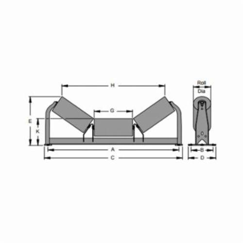 PPI® D6-45TE-36SB Trougher Equal Idler, D CEMA Rating, 6 in Dia Roll, 45 deg Trough Angle, 36 in W Belt