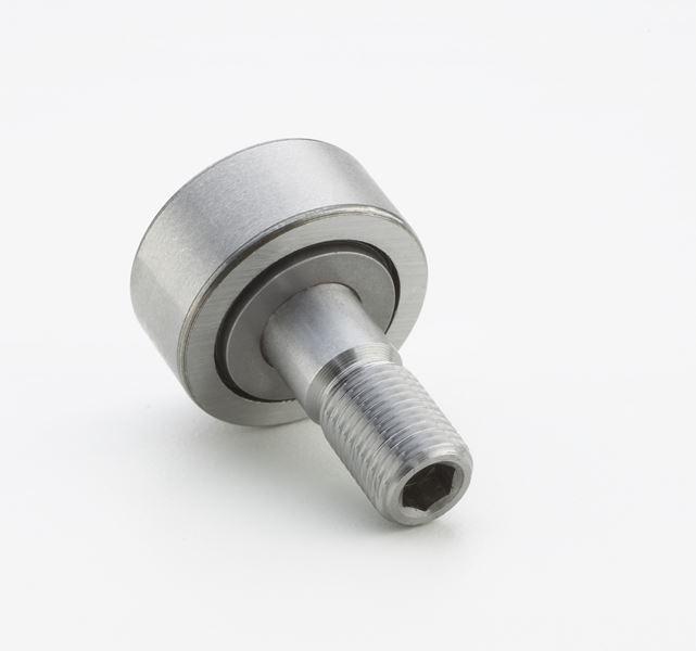 RBC® HexLube® CFM22 Needle Roller Cylindrical Cam Follower, 22 mm Dia x 12 mm W Roller, 10 mm Dia x 23 mm L Stud, Chrome Steel Roller