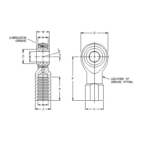 SealmasterĀ® 1410501000 3-Piece Precision Grade General Purpose Bearing Rod End With Zerk Grease Fitting, 5/16 in Dia Bore, 7/8 in OD, 0.437 in W, 3350 lb Static Load, Carbon Steel
